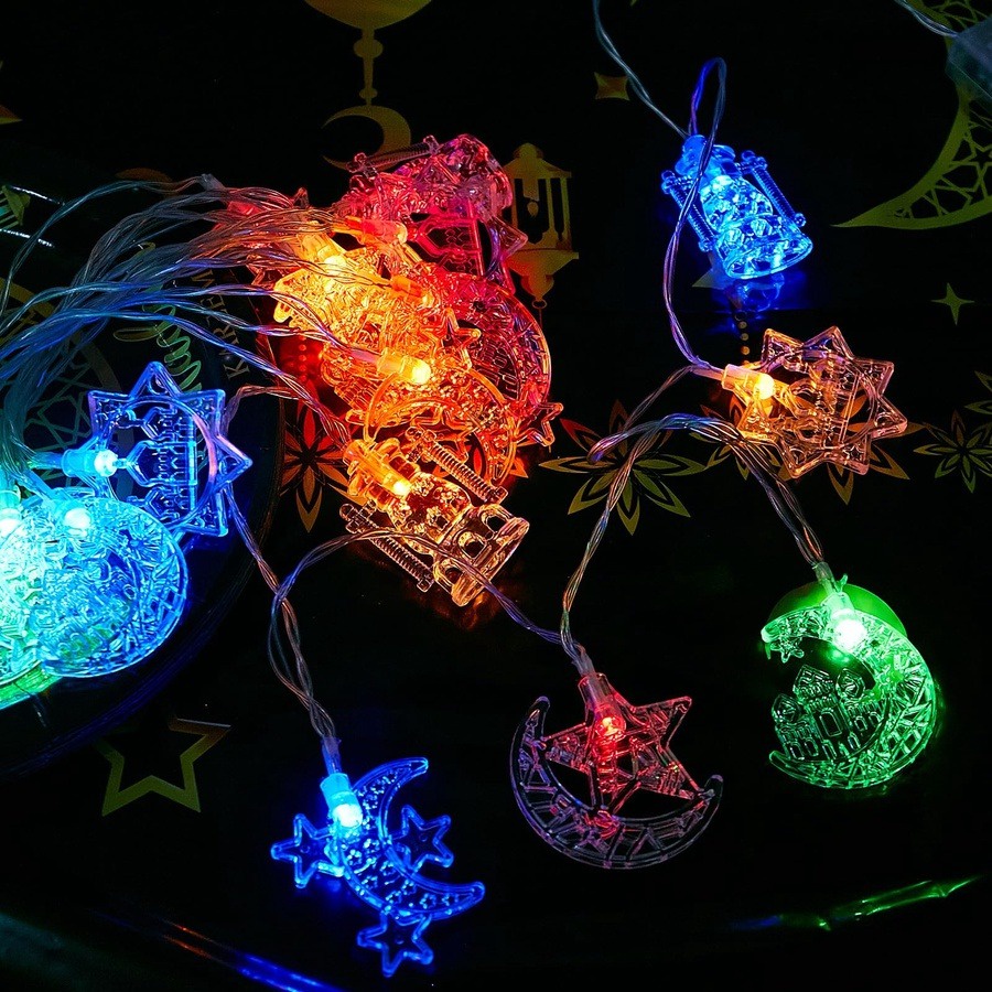 حبل إضاءة مزوّد بأشكال نجمة ⭐ وفانوس 🏮 كريستال كبيرة بإضاءة دافية وناعمة، تخلق أجواء رمضانية مليانة دفء وراحة، ومناسبة لكل تفاصيل الشهر الكريم 🌙❤️