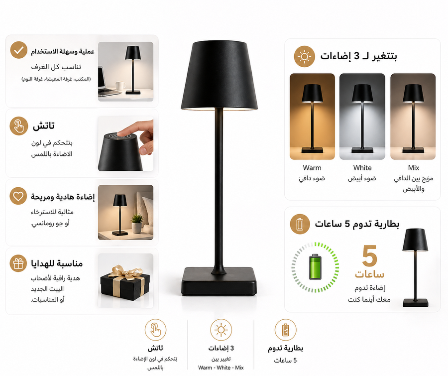 فـ أباجورة التاتش القابلة للشحن هي الاختيار المثالي ليك!