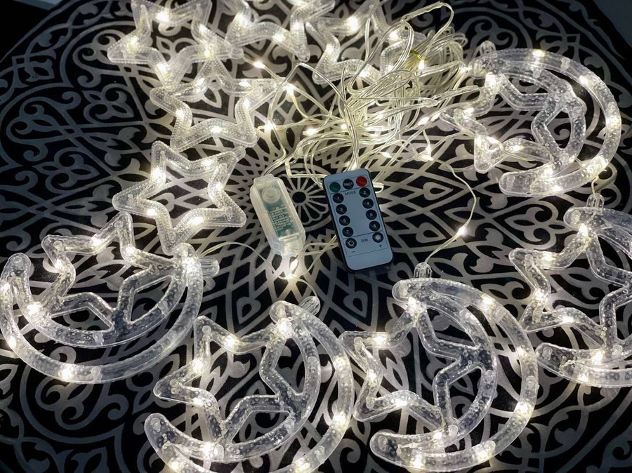 ✨🌙 أضف لمسة رمضانية ساحرة لمنزلك مع ستاره رسومات هلال بنجمة 💡، لتزيين الغرف، الشرفات، وطاولات الإفطار بطريقة فنية وأنيقة. هذه الستارة الرائعة تضفي أجواء دافئة واحتفالية ❤️🕯️ على أي ديكور رمضاني.