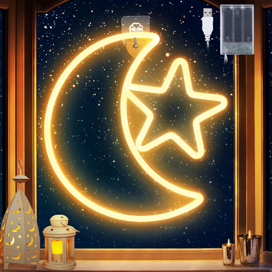 🎁 سهل التركيب والاستخدام، ويجعل الهلال والنجمة تتلألأ بألوان جذابة ومبهرة 🌟💡.