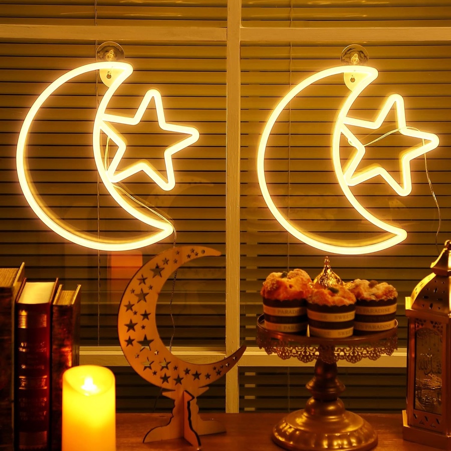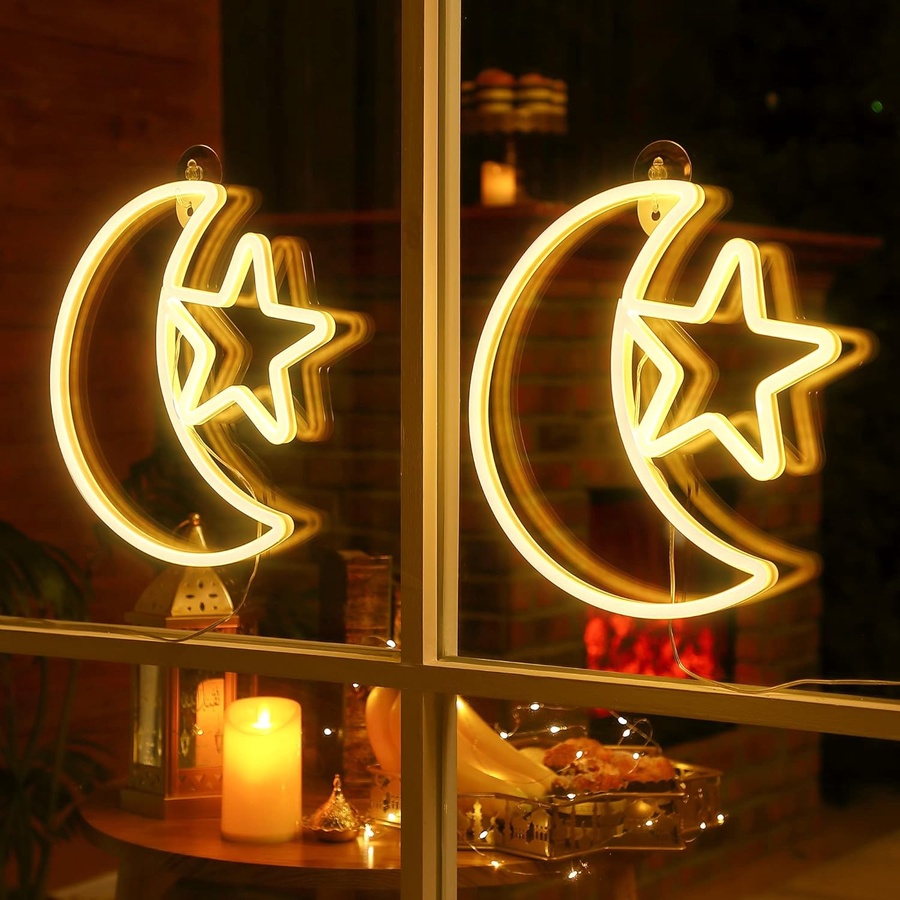 ✨🌙 أضف لمسة رمضانية ساحرة لمنزلك مع هلال بنجمة بارتفاع 45 سم مزود بخرطوم نيون 3 متر 💡، يضيء بألوان رائعة وورم وكوكتيل 🌈 ليخلق أجواء دافئة واحتفالية ❤️🕯️.