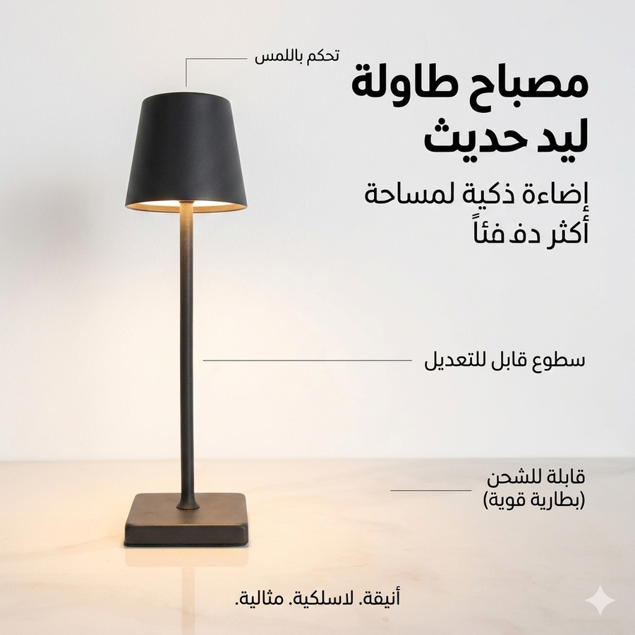 ضوء خافت للاسترخاء، متوسط للقراءة، قوي للشغل — كل ده بإصبعك